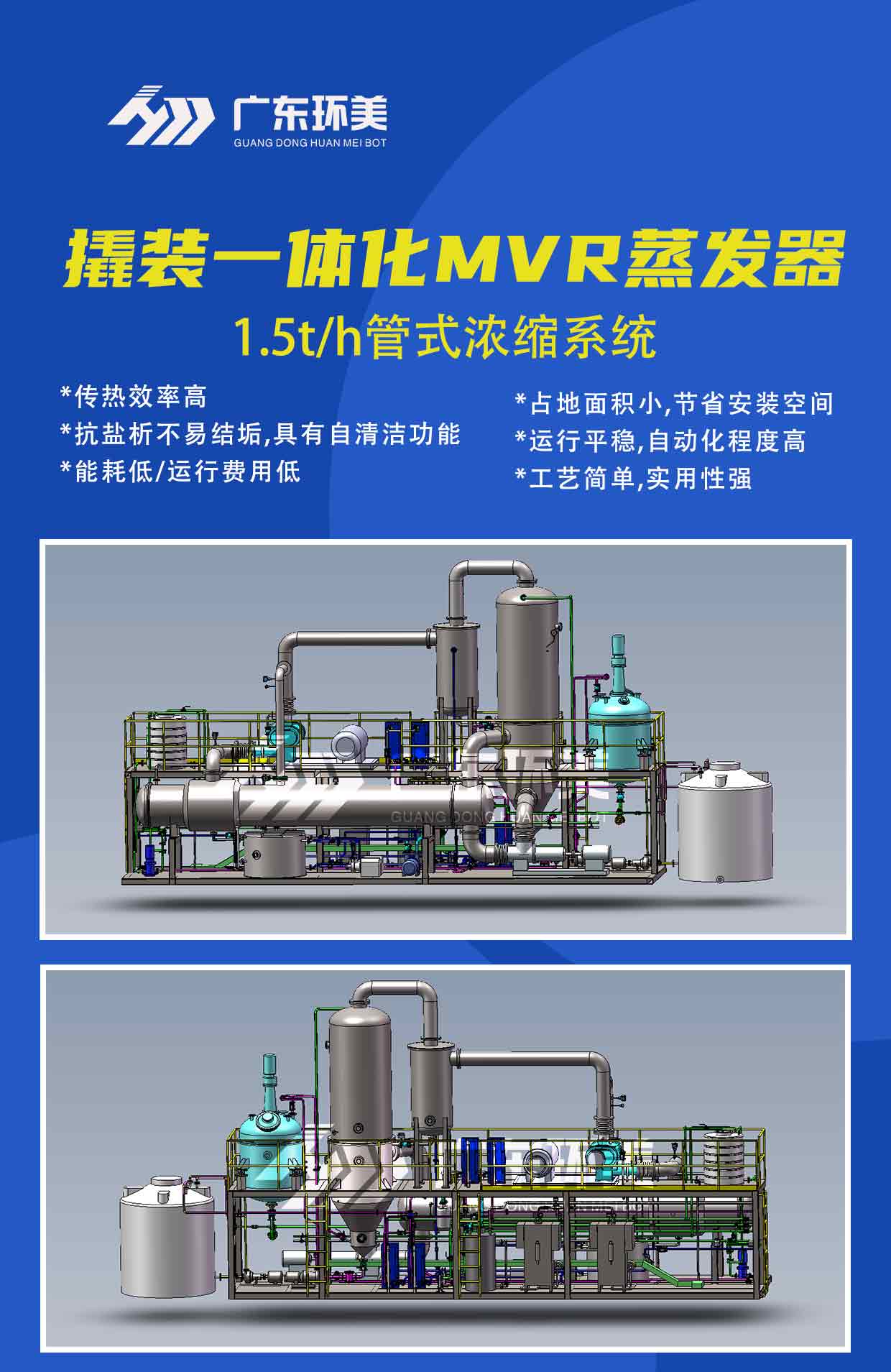 設(shè)計能力:1.5t/h 撬裝MVR蒸發(fā)濃縮系統(tǒng)